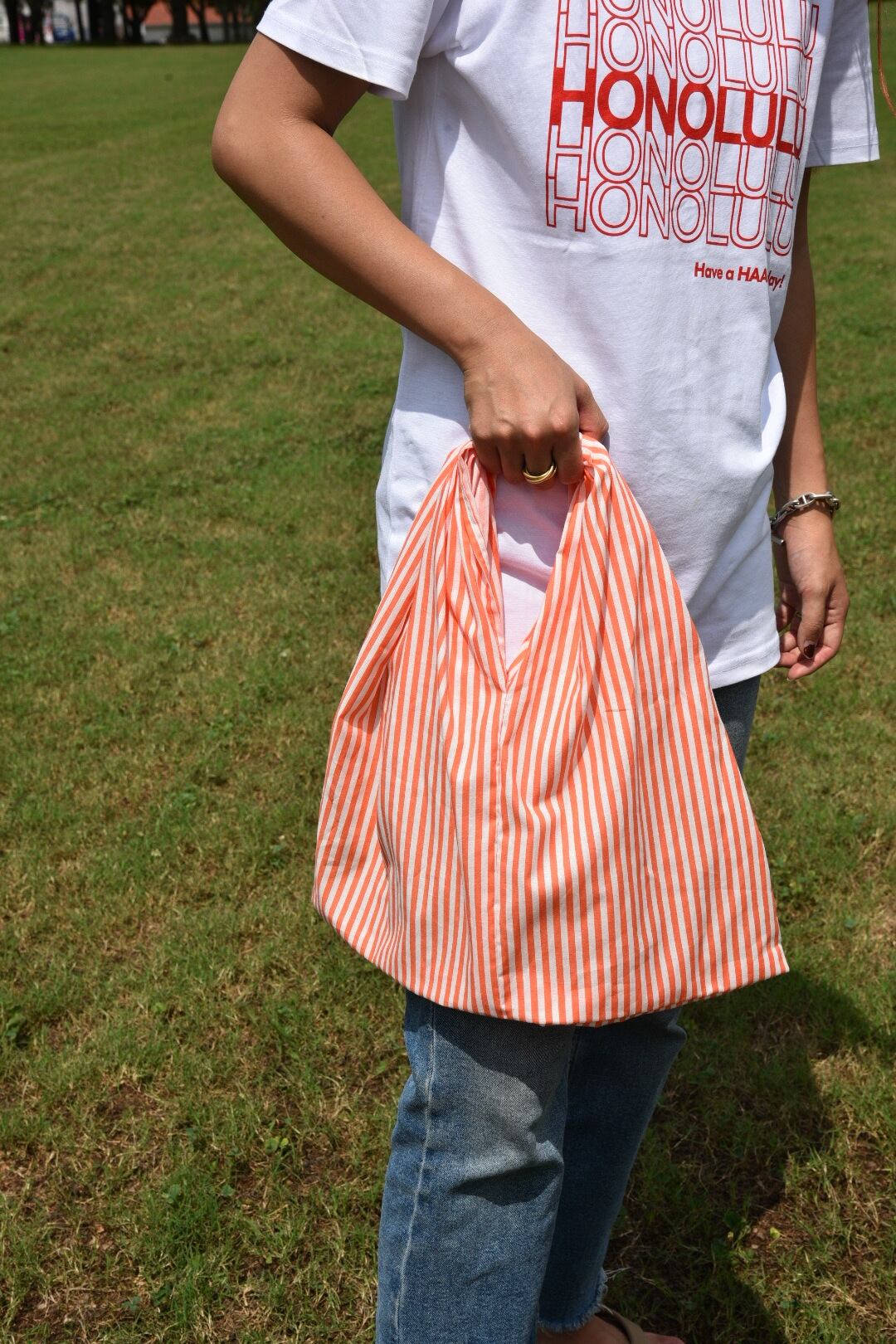 Orangeストライプの Pikara bag
