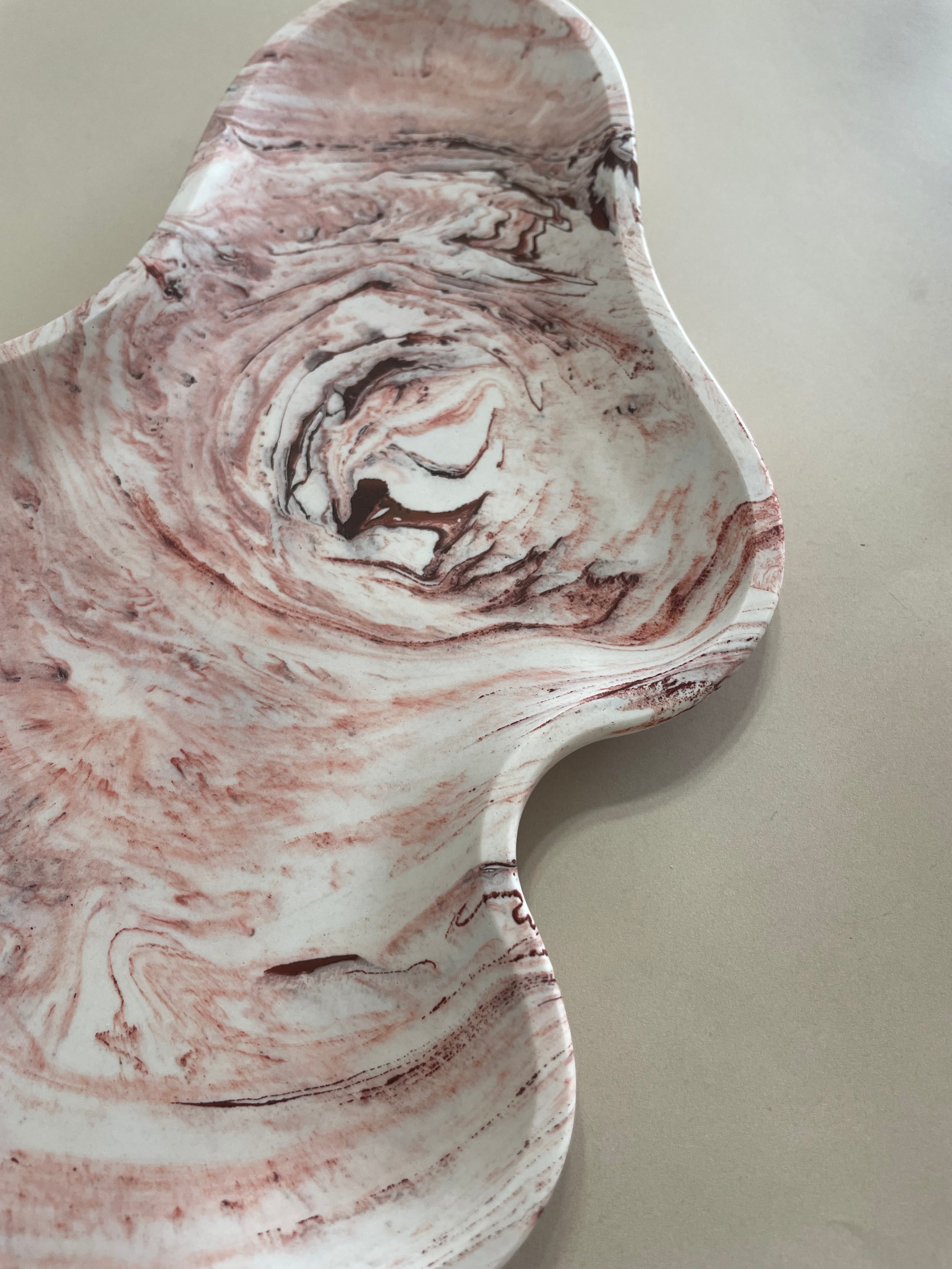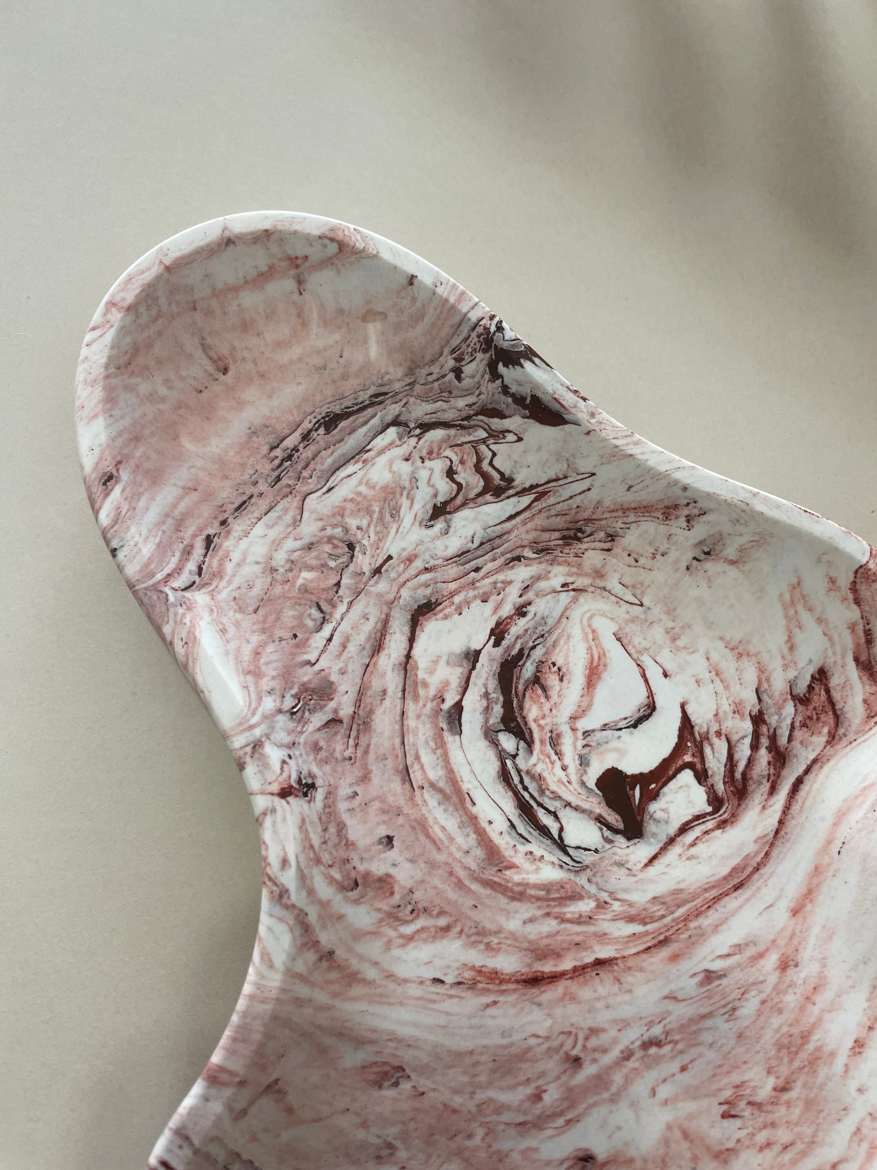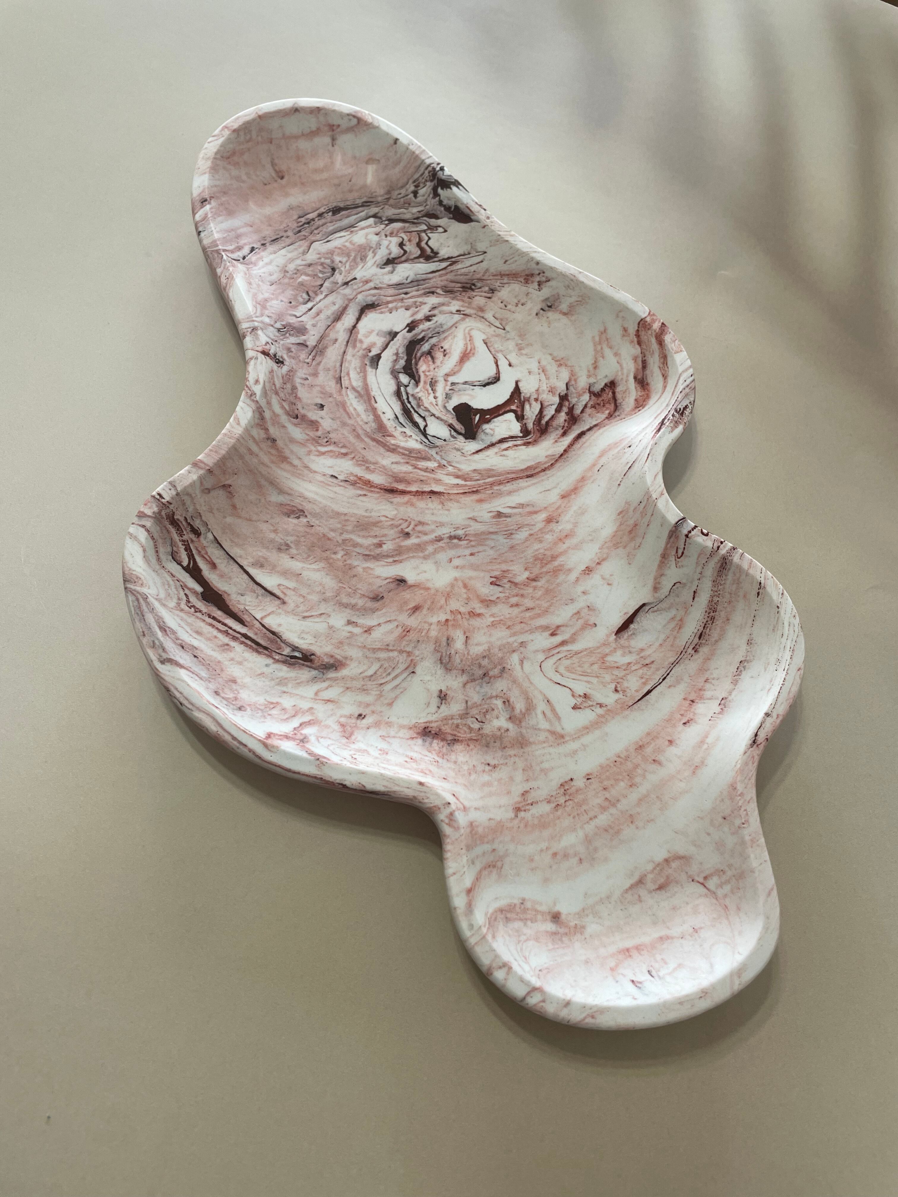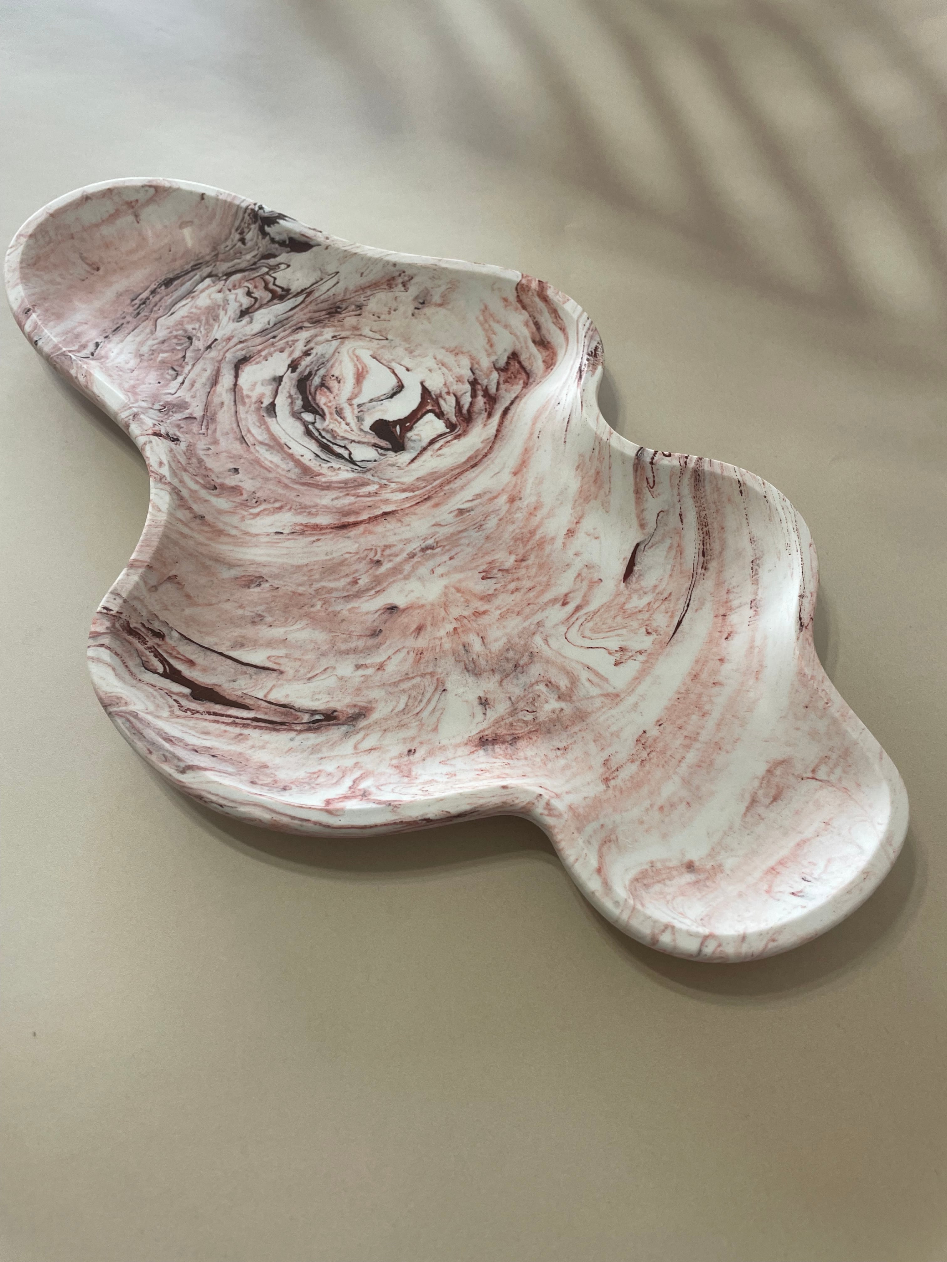 ころんとした個性的なフォルムのピンクのアクセサリートレイ。