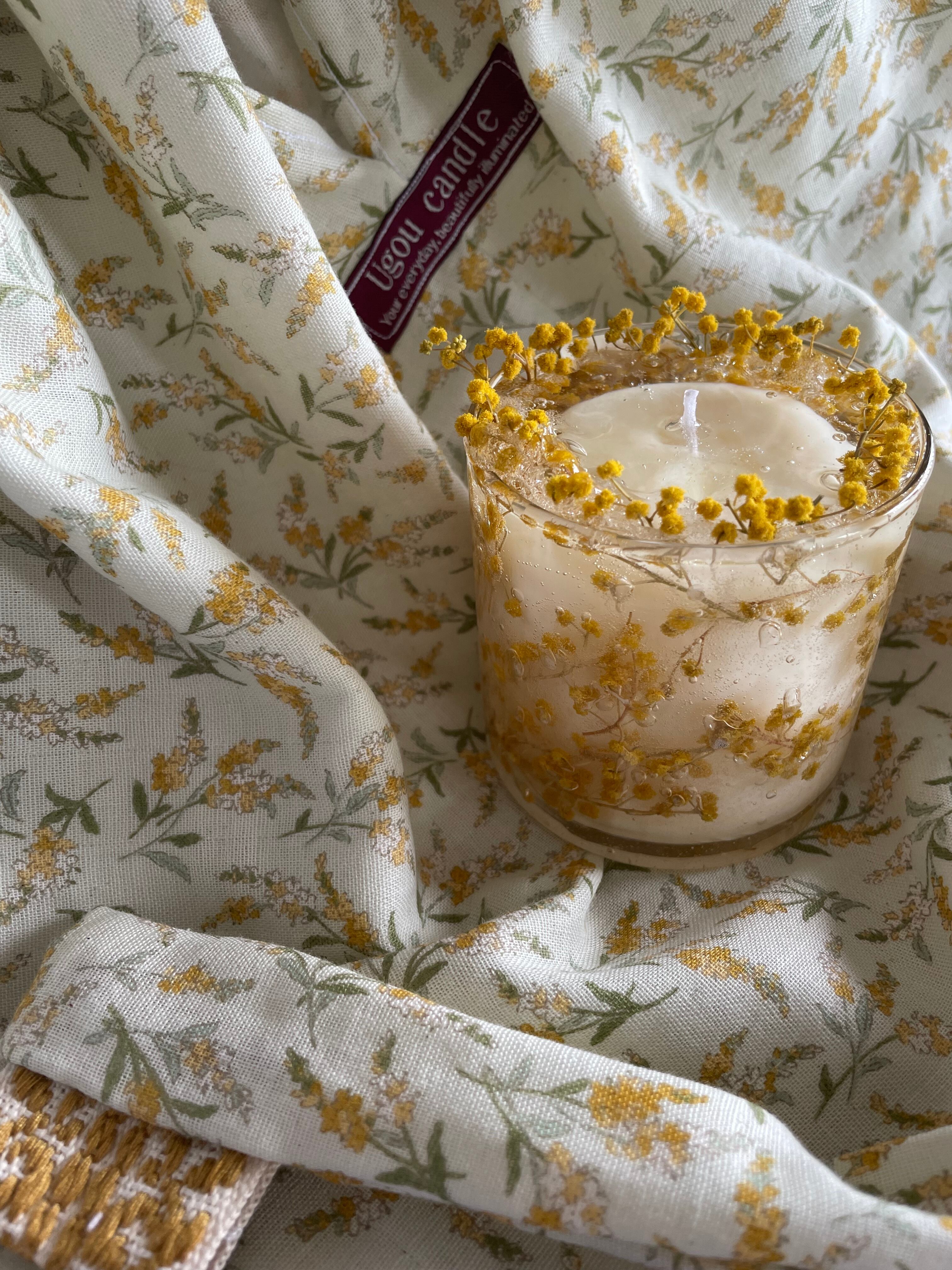そのシンボルフラワーであるミモザを閉じ込めた、特別なキャンドルをお作りしました。
